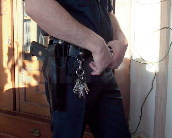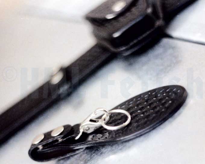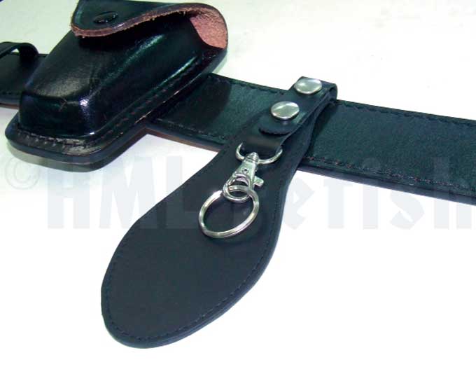 Der Gürtel-Karabiner für den Sam-Browne-Gürtel. Bietet viel Platz für Dein Schlüsselbund und anderes Zubehör. Mit vernickelten Druckknöpfen und Haken. Zwei Ausführungen erhältlich: glattes oder geprägtes (punziertes) Leder.